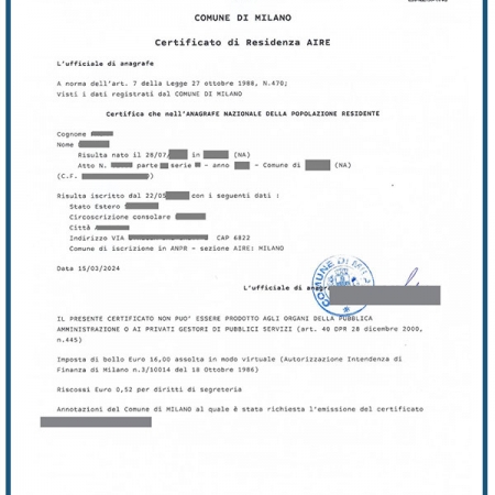 Certificato di residenza