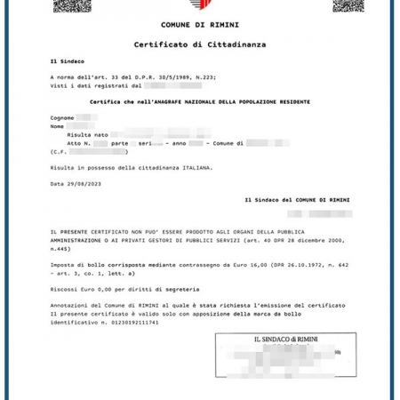 Certificato di cittadinanza