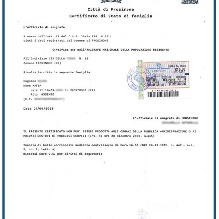 Certificato di stato di famiglia