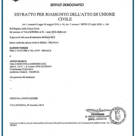 Certificato di unione civile
