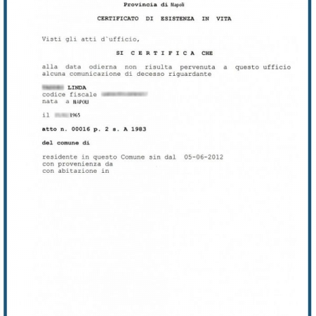 • Certificato di esistenza in vita