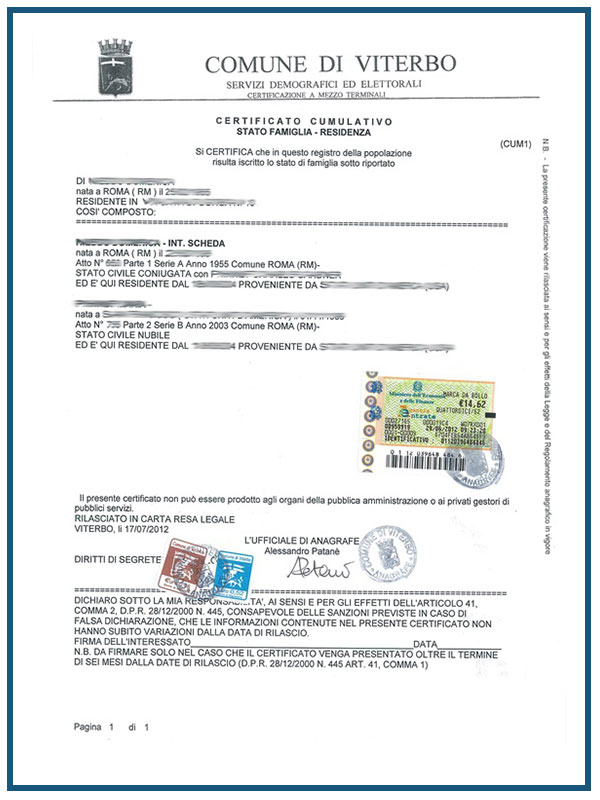 COD: GIT-CERTIFICATO-STATO-FAMIGLIA-CUMULATIVO