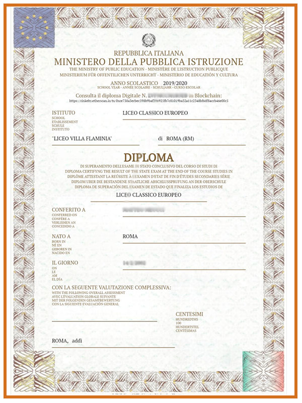 Traduzione giurata del diploma di scuola secondaria per uso presso università estere, autorità scolastiche straniere e datori di lavoro internazionali. Necessaria per l’iscrizione a corsi universitari e programmi formativi all’estero e per il riconoscimento del titolo di studio estero da parte delle autorità scolastiche italiane per studenti stranieri che si iscrivono a scuole o università in Italia.