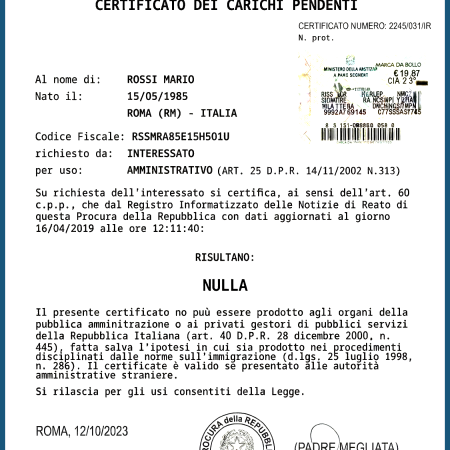 La traduzione viene completata normalmente in 2-3 giorni lavorativi dal momento dell’acquisto e inviata in formato elettronico appena pronta oppure completata con giuramento e/o legalizzazione e poi spedita. Le tempistiche di completamento dei servizi legali accessori possono variare in base alla disponibilità degli organi competenti.