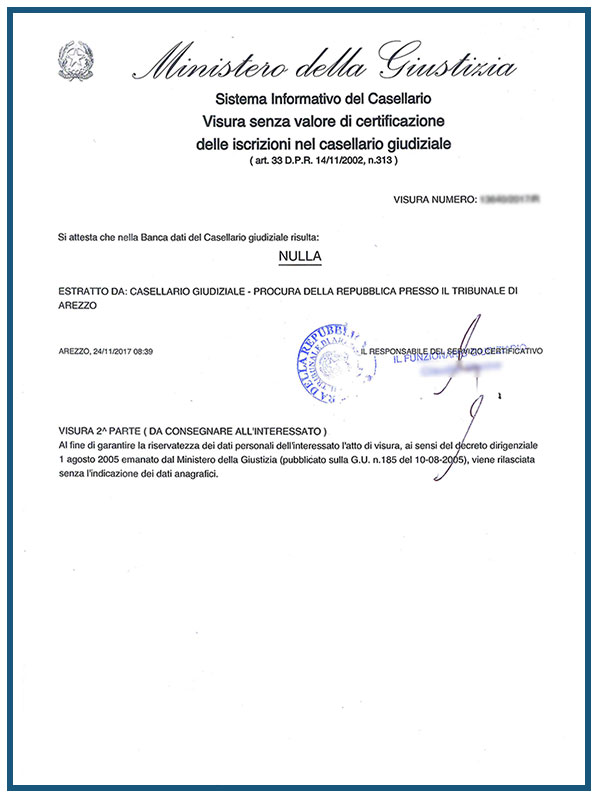 Traduzione visura penale