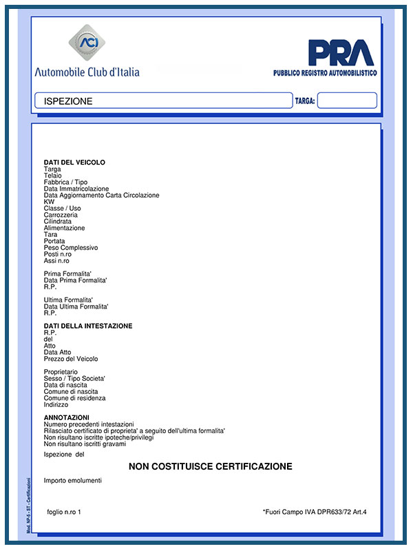Traduzione ufficiale della visura PRA per uso presso motorizzazioni civili estere, agenzie di immatricolazione straniere, studi legali internazionali e istituti bancari. Richiesta per attestare la proprietà, l’assenza di vincoli e la storia del veicolo in operazioni di vendita, esportazione e pratiche assicurative all’estero.